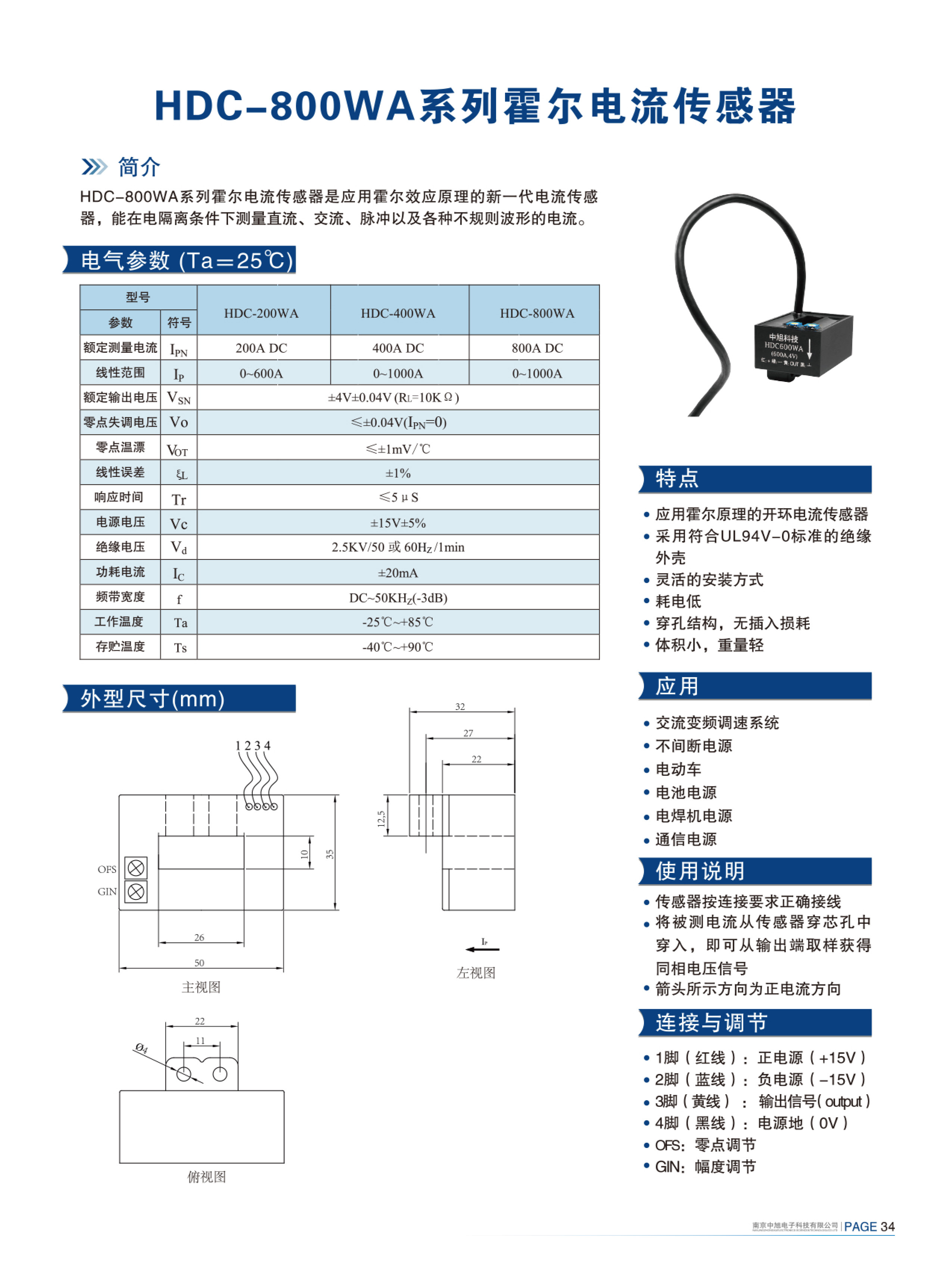 HDC-600WA系列霍爾電流傳感器是應(yīng)用霍爾效應(yīng)原理的新一代電流傳感器,能在電隔離條件下測(cè)量直流、交流、脈沖以及各種不規(guī)則波形的電流。