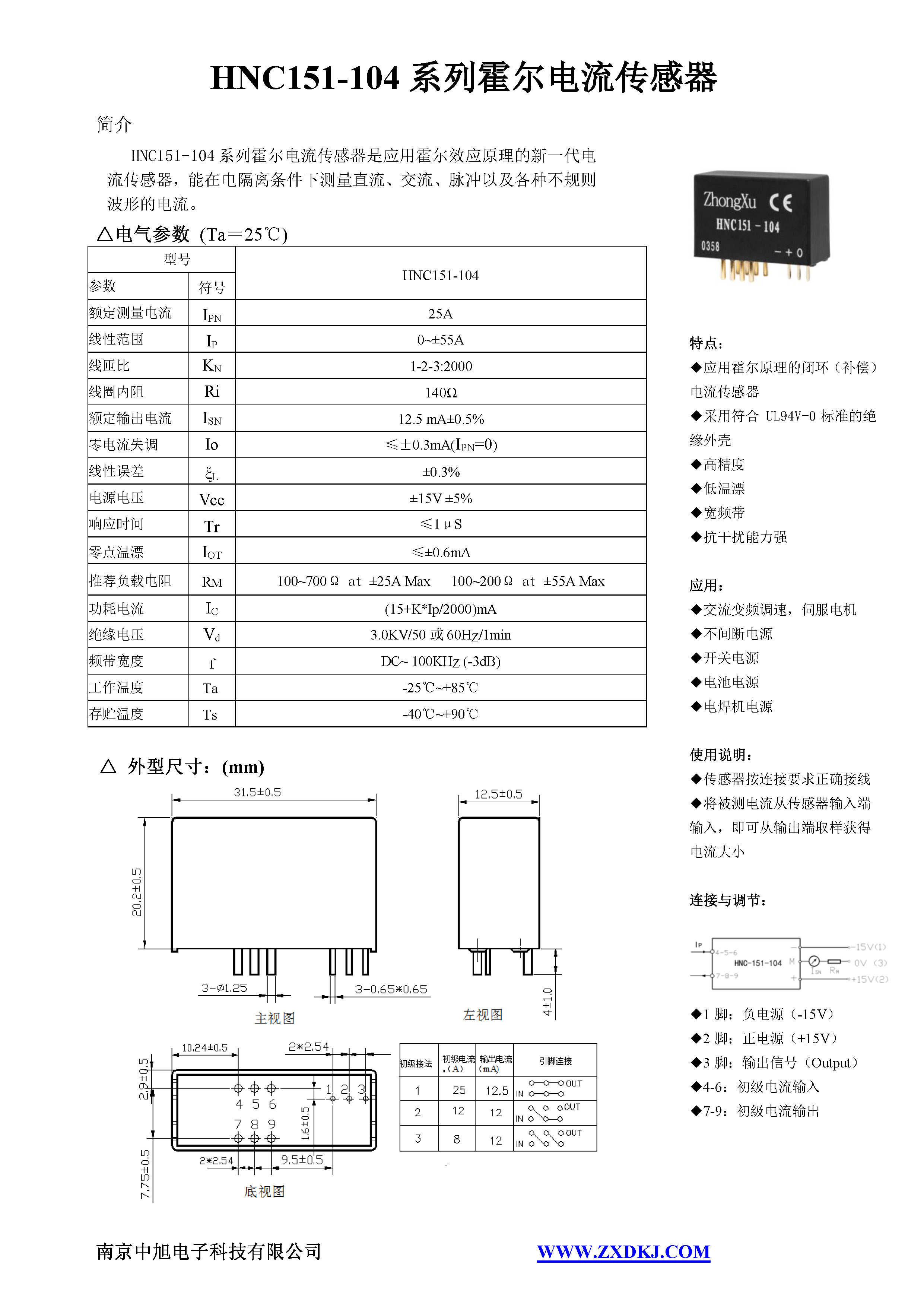 HNC151-104系列霍爾電流傳感器是應用霍爾效應原理的新一代電流傳感器,能在電隔離條件下測量直流、交流、脈沖以及各種不規(guī)則波形的電流。